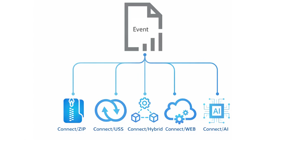 Connect/Hybrid seamlessly integrates with SAS by reformatting and streaming data directly into SAS command-line processes. For large-scale datasets like SMF data used in analytics, this approach eliminates the need for separate data staging, reformatting, file transfer, and loading steps, significantly boosting efficiency.